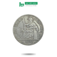 Đồng Bạc Đánh Cảm Cạo Gió Hoa Xòe Đông Dương Hình Bà Đầm Cũ Bạc Ta 50 Cent BẠC HIỂU MINH DDD002C XDG