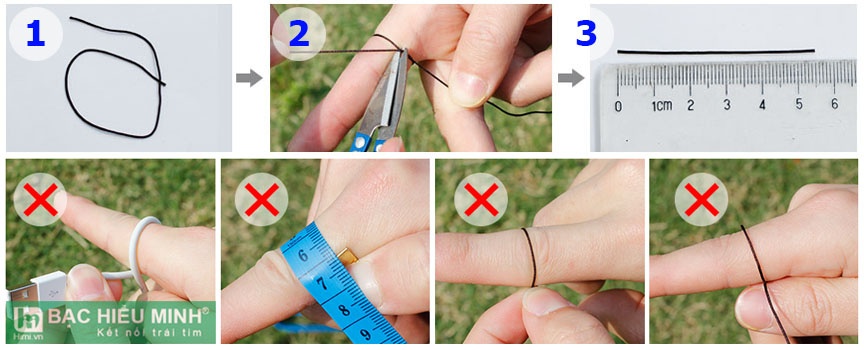 Kích thước mỗi chiếc nhẫn sẽ được nhà cung cấp điều chỉnh linh động theo số đo cụ thể từng khách hàng. Khách hàng đo size tay theo hướng dẫn bên dưới: